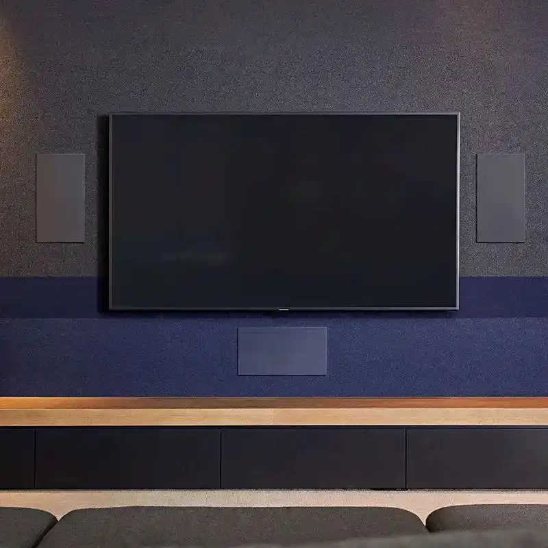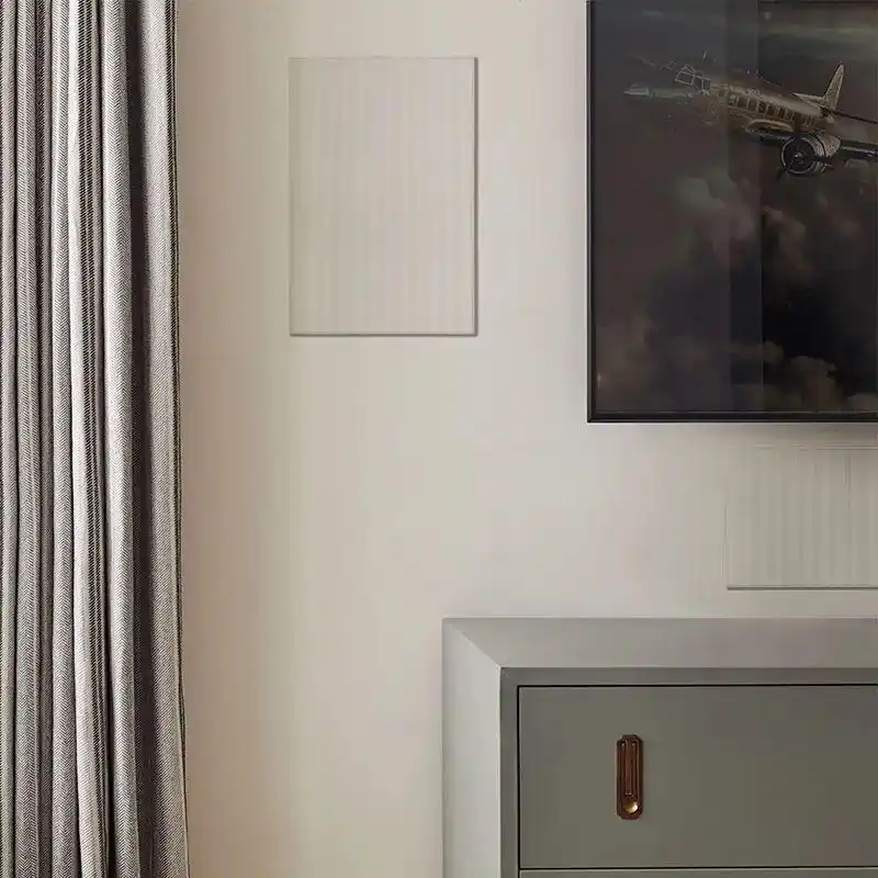 大部分嵌入式音箱都会搭配超薄无边框金属网罩,影音室用可以把网罩喷漆,完美融入整体环境。