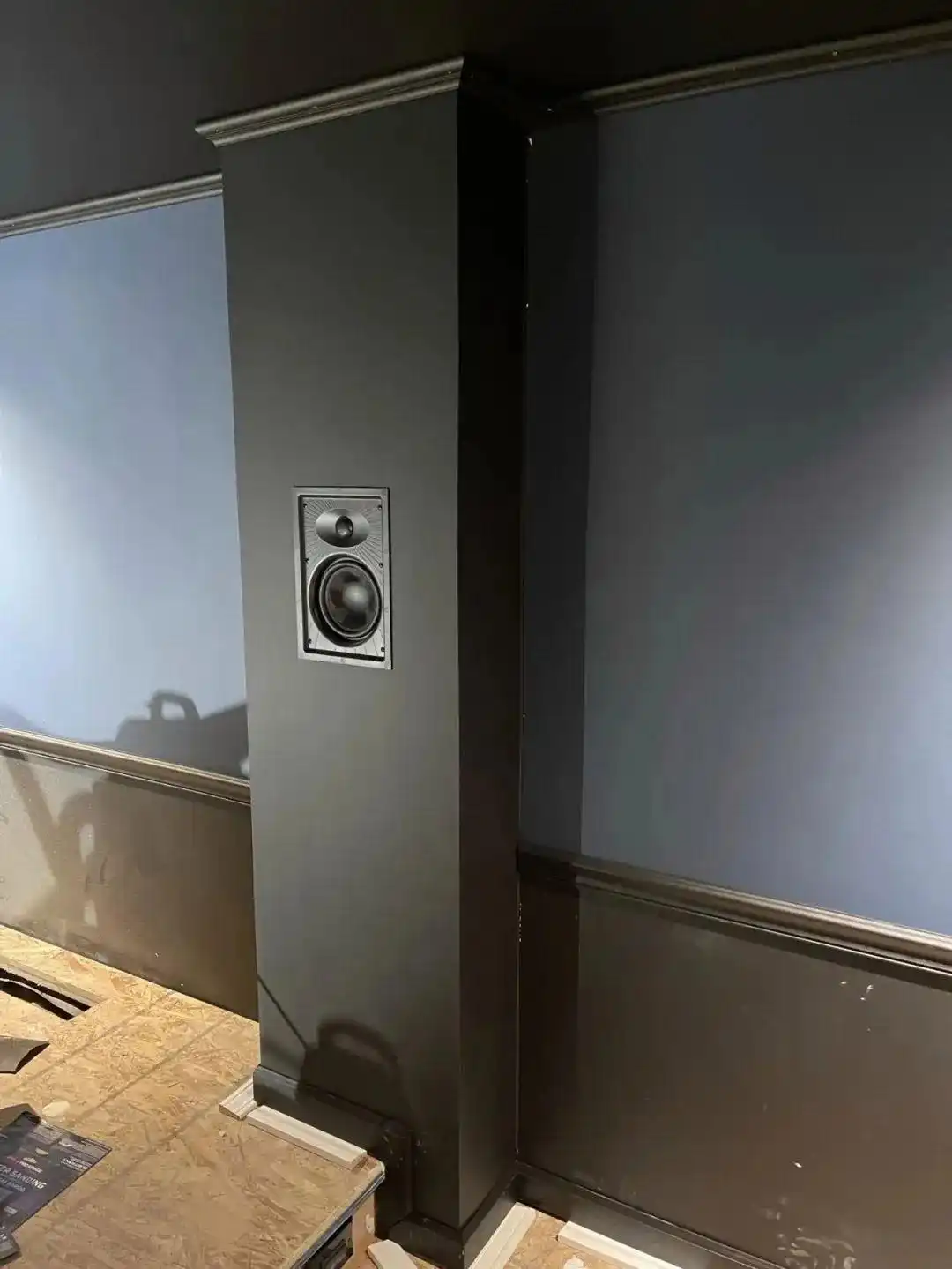 用在影音室的话,特别是小型影音室,更加节省空间。很多CEDIA获奖作品都应用到了嵌入式音箱。