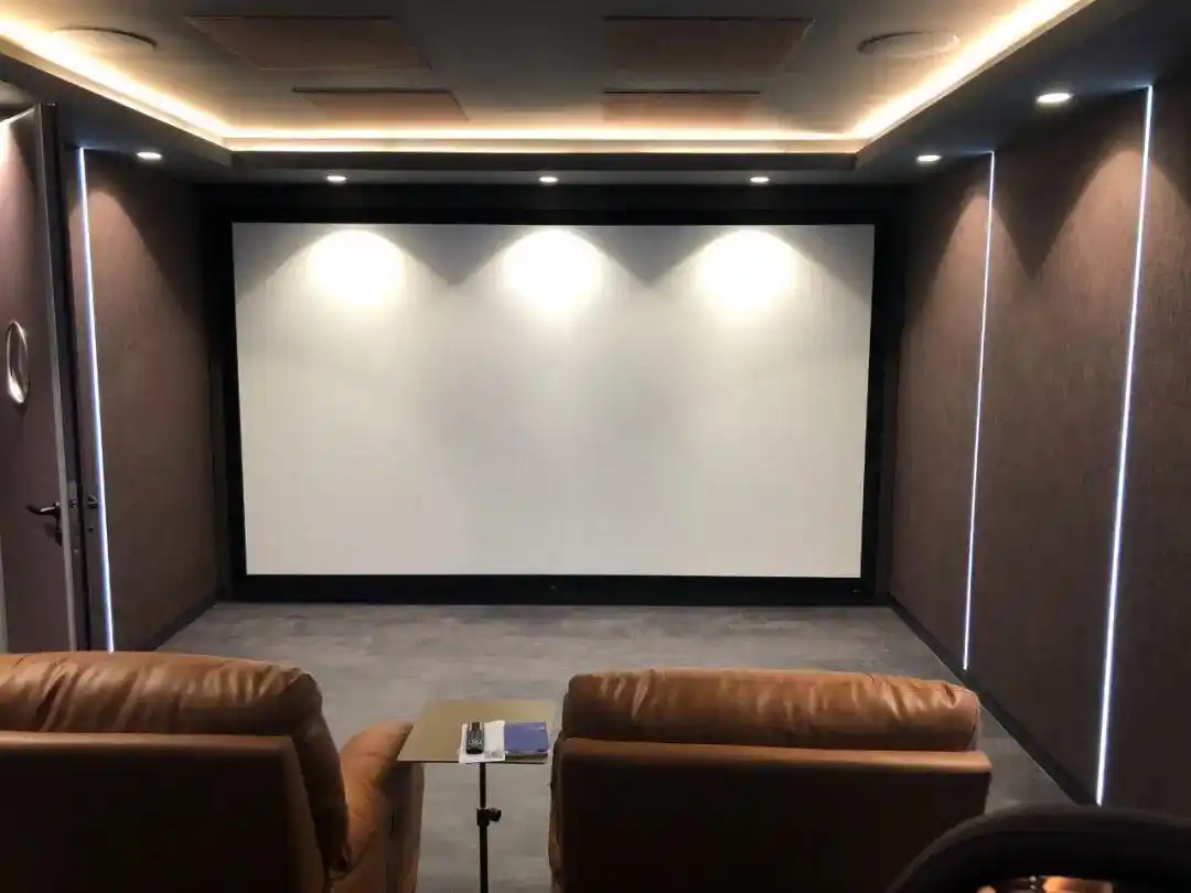 一般独立影音室我都会建议用嵌入式音箱+透声幕的方案,除了解决背墙SBIR效应,还可以让幕布最大化,提供更更加身临其境的沉浸感。