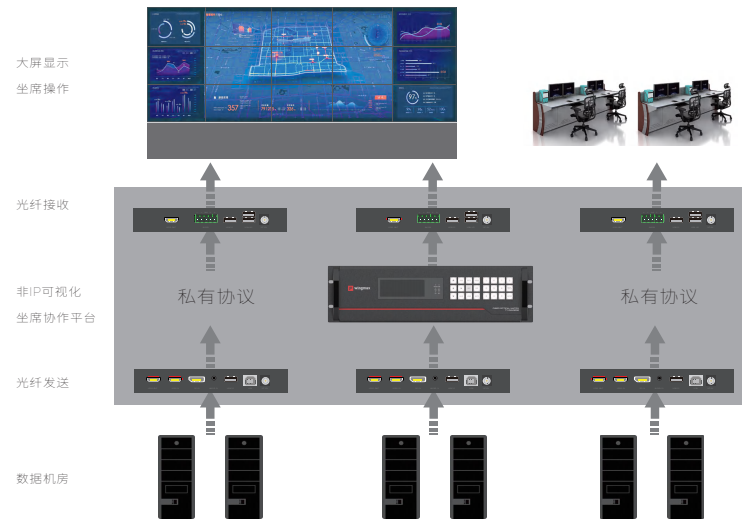 第一种方式:非 IP 分布式光纤 KVM 坐席协作管理系统